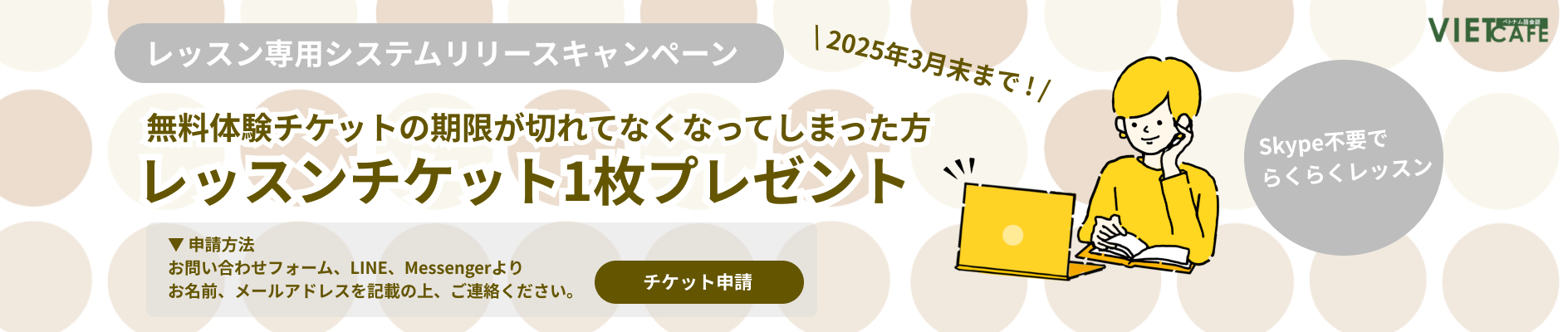 レッスン専用システムのリリースに伴いまして、これまで無料体験レッスンチケットの期限が切れてなくなってしまった方に、レッスンチケットを1枚配布いたします。是非ご利用くださいませ。 ▼ 申請方法 お問い合わせフォーム、LINE、Messengerより、お名前、メールアドレスを記載の上、ご連絡ください。
